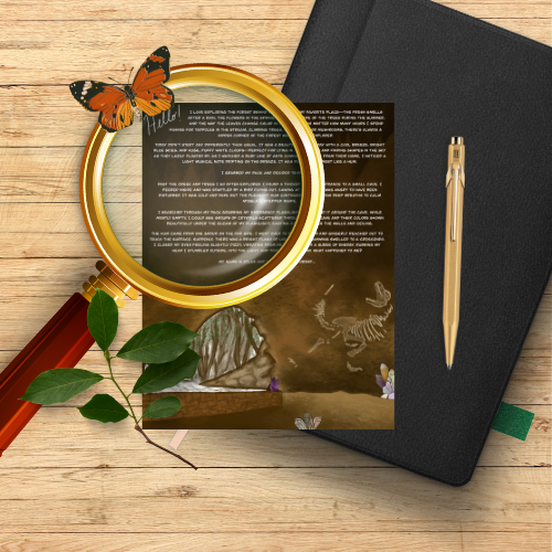 Follow the daring adventures of our young explorer as he goes to the past and makes contact with extinct species, learning about them & their environment in this two-page artistic story!
